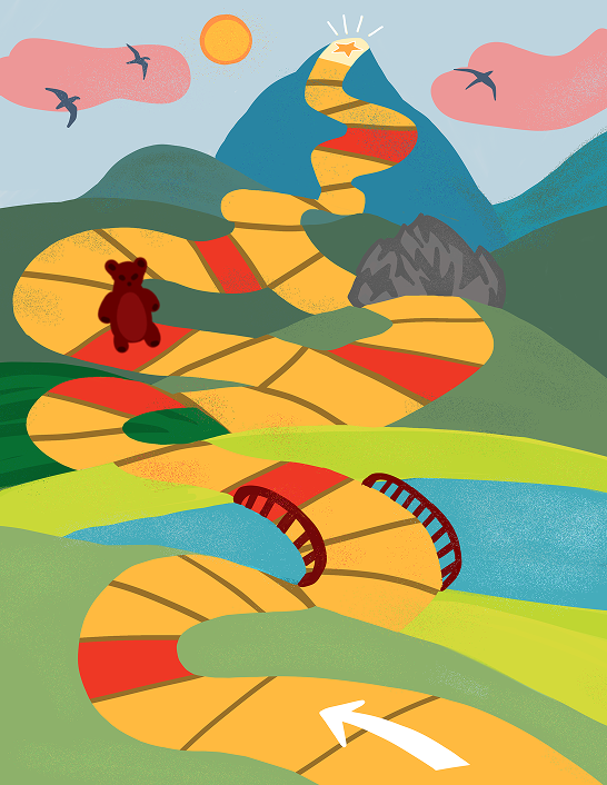 The player to complete the hike with the most reward tokens wins!
