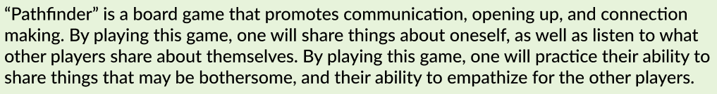encourage you to share and listen to others in order to win the game. As the game goes on you will continue to